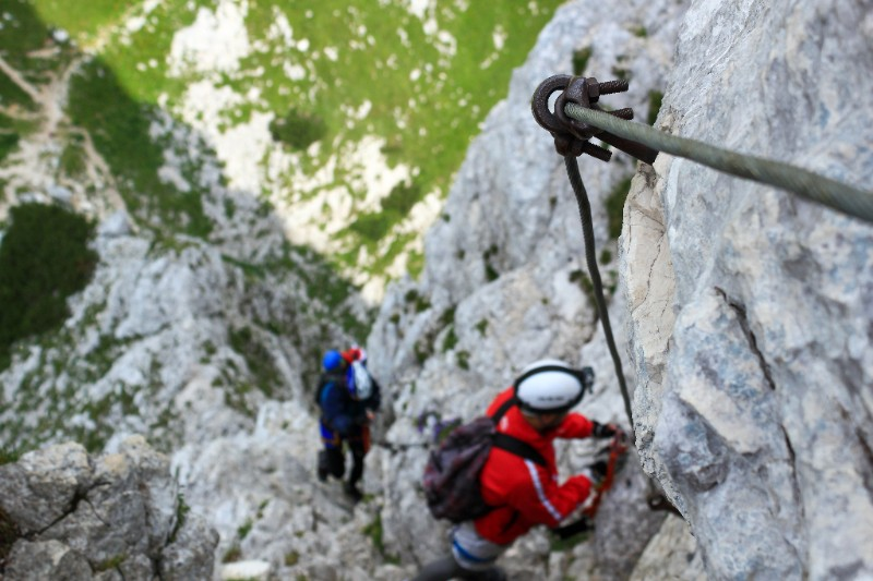 *A via ferrata, Italian for “iron road”, is a protected mountain climbing path with a system of safety cables, rungs, ladders, and bridges. We had to look it up too.
